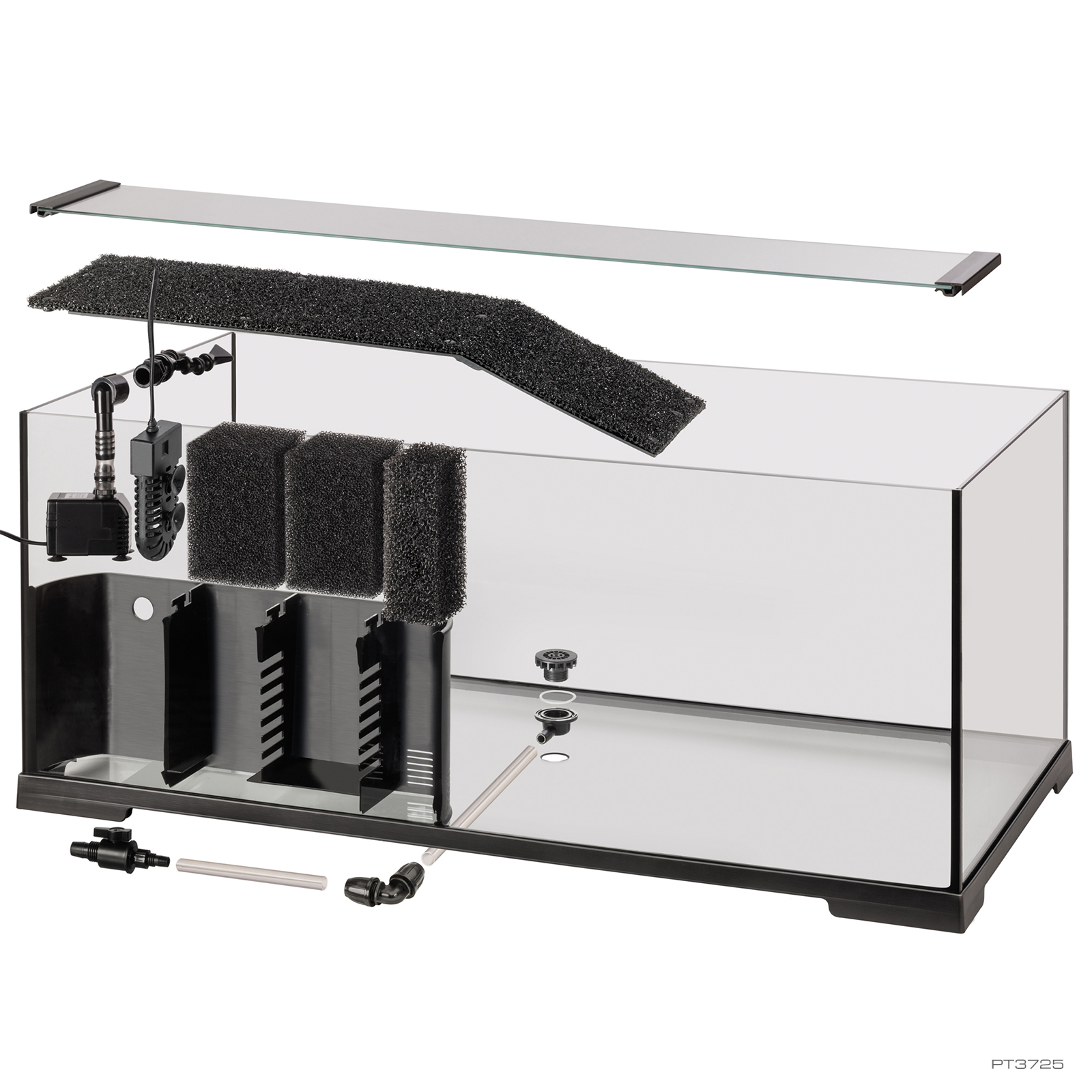 PT3725 - Turtle Haven - Terrario para tortugas acuáticas con filtro, plataforma para asolearse y Calentador Turtle Heater de 150 W - Grande - 90 cm x 45 cm x 37 cm.